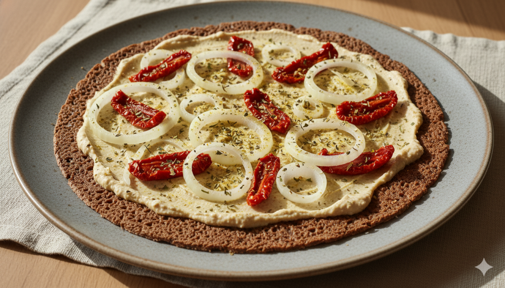 Ensuite, elle m'a préparé une galette, mélange de lupin et de sarrasin, garnie de légumineuses et d'orties, assaisonnée avec des huiles, des épices et du cumin. Je me suis vraiment régalée. C'était super bon, offrant une profondeur des goûts et une finesse. On sent que c'est une cuisine qui est vraiment saine.